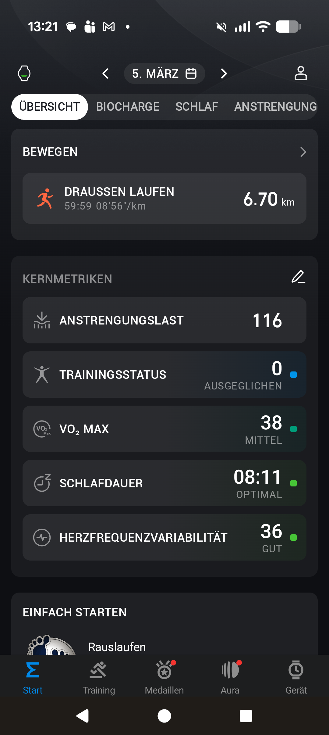 Wer von Garmin, Huawei, Xiaomi und Co. eine Kachelansicht gewohnt ist, findet die Darstellung zunächst vielleicht unübersichtlich. Nach kurzer Eingewöhnung erschließt sich die Struktur aber gut und wichtige Informationen sind schnell zugänglich. Wer sich an das Konzept gewöhnt hat, findet viele Daten sogar schneller als bei der Konkurrenz.