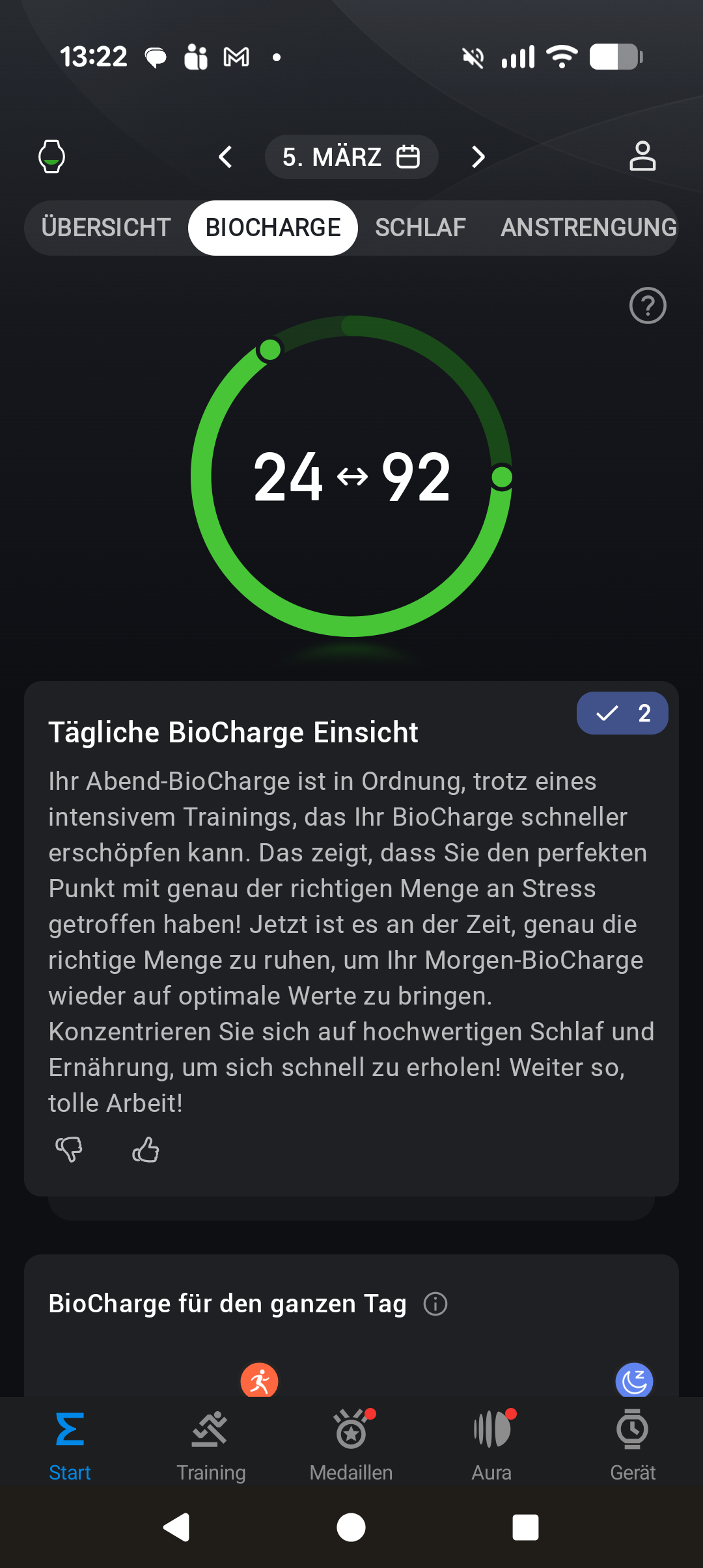 Das bekannte Recovery-Pro- und Training-Load-Pro-System ist auch wieder an Bord. Es bewertet die Erholung nach dem Training und gibt Empfehlungen zur Trainingsintensität. Die Einschätzungen decken sich im Test meist mit dem eigenen Empfinden – eine kritische Einordnung bleibt aber sinnvoll.