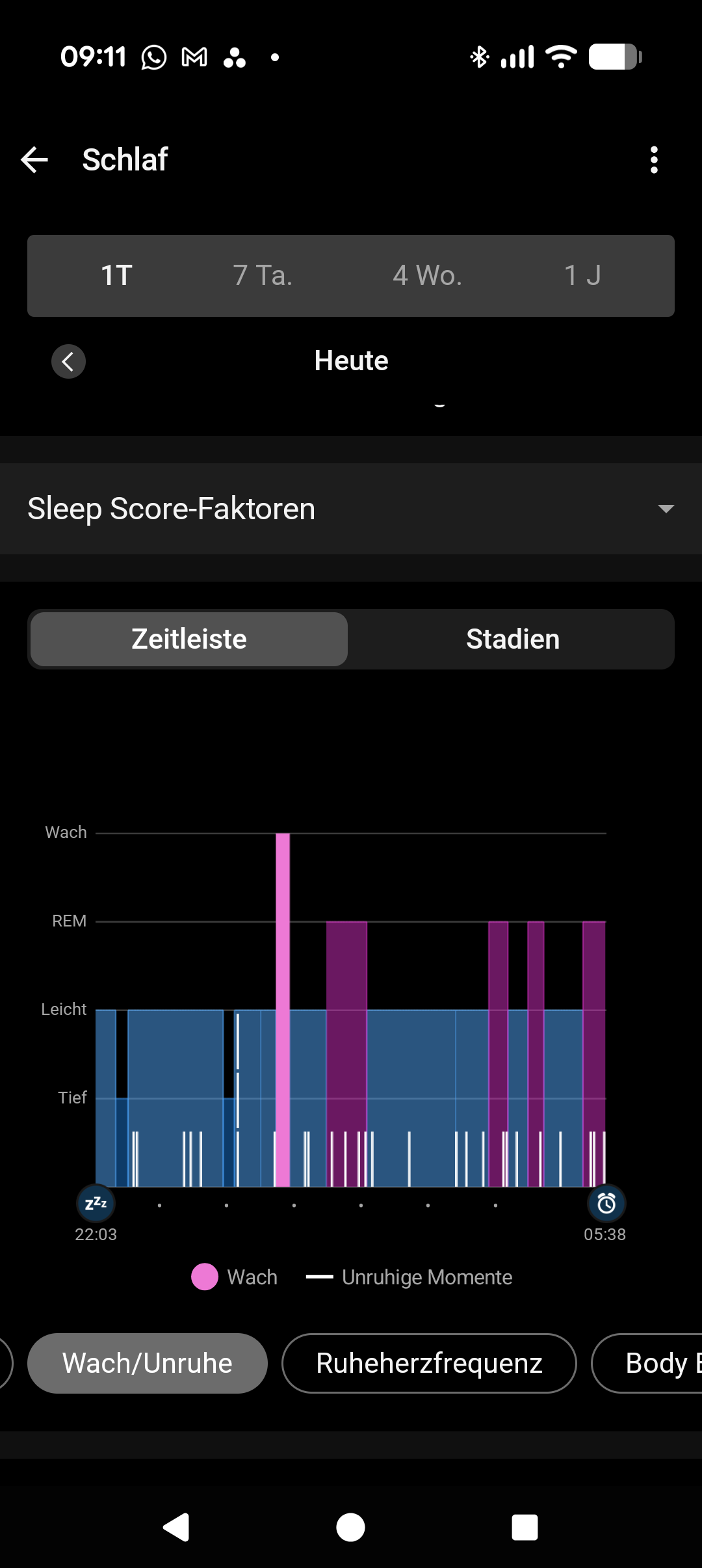 Die Schlafanalyse zeichnet Schlafphasen, Schlafdauer, Wachzeiten, Herz- und Atemfrequenz sowie die Blutsauerstoffsättigung auf. Das funktioniert im Test einwandfrei: Schlafdauer und Wachzeiten werden zuverlässig erkannt, und auch die Bewertung der Schlafqualität deckt sich weitgehend mit dem subjektiven Empfinden. Selbst Nickerchen am Tag erfasst die Uhr zuverlässig. Lediglich Wachphasen erkennt die Uhr nicht immer. In der App finden sich zudem hilfreiche Tipps zur Verbesserung des Schlafs. Abonnenten von Huawei Health+ können zusätzlich auf eine Auswahl an Schlafmusik zugreifen, die für Nutzer der kostenlosen Version nur eingeschränkt zur Verfügung steht.