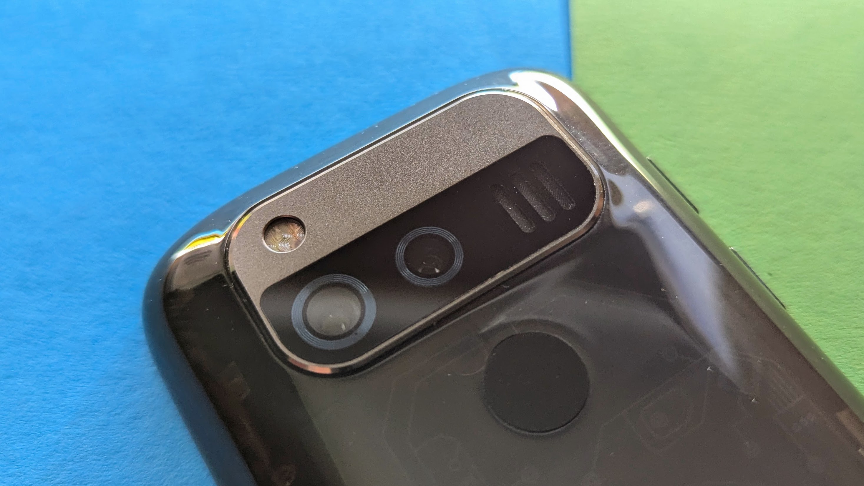 Hinzu kommt nun auch eine deutlich höhere Qualitätsanmutung wegen hochwertigerer Materialien. Im Gegensatz zum Vorgänger besteht die Rückseite nicht mehr aus Kunststoff, sondern der Hersteller verwendet hier jetzt wie auf der Front Gorilla Glas Victus+. Wegen der matten Farbgestaltung sieht das nicht nur schick aus und fühlt sich zudem viel hochwertiger als beim Vorgänger an, sondern verhindert zudem effektiv Fingerabdrücke und sonstige sichtbare Verschmierungen. Die Kameraeinheit ist wie beim Vorgänger in der oberen linken Ecke implementiert und steht wieder leicht hervor.