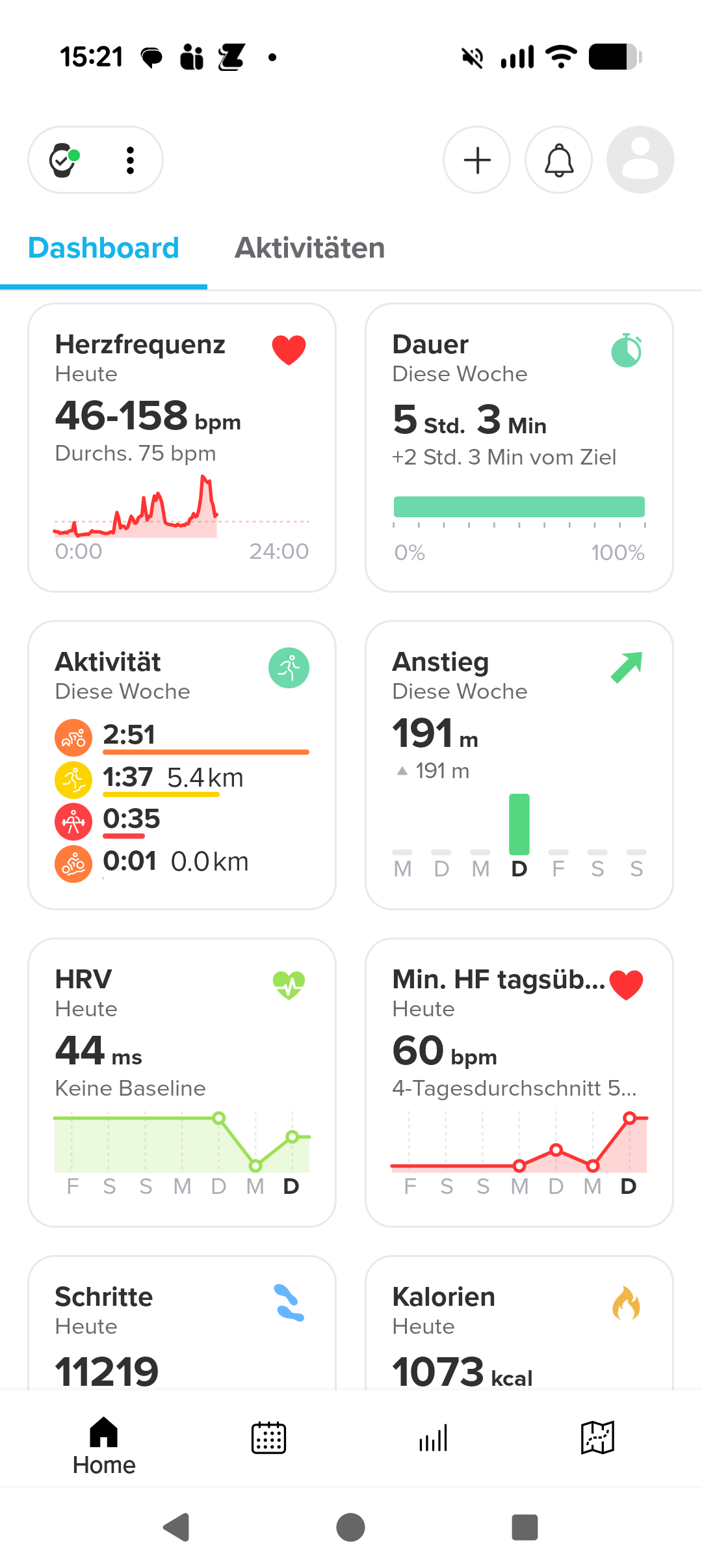 Wer von Garmin, Huawei, Xiaomi und Co. eine Kachelansicht gewohnt ist, findet die Darstellung zunächst vielleicht unübersichtlich. Nach kurzer Eingewöhnung erschließt sich die Struktur aber gut und wichtige Informationen sind schnell zugänglich. Wer sich an das Konzept gewöhnt hat, findet viele Daten sogar schneller als bei der Konkurrenz.