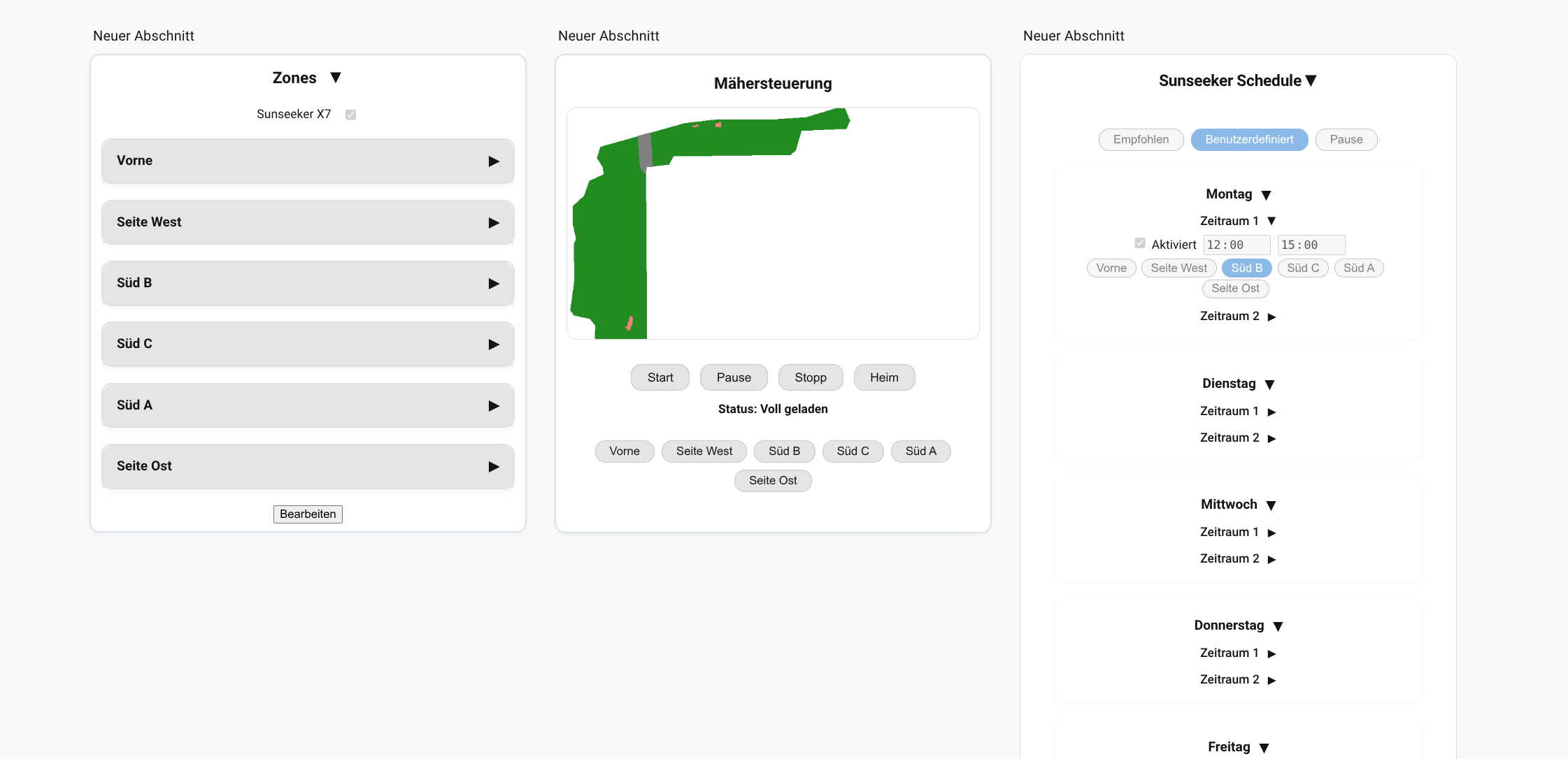 Was die Steuerungsmöglichkeiten anbelangt, zeigt sich die Dreame-App sehr vielseitig. Sie bietet nicht nur zwei unabhängige Karten (A2) für verschiedene Standorte, sondern – zusammen mit der Sunseeker-App – die meisten Einstellungen für Zonen inklusive Mährichtung und Mähmodus bietet.