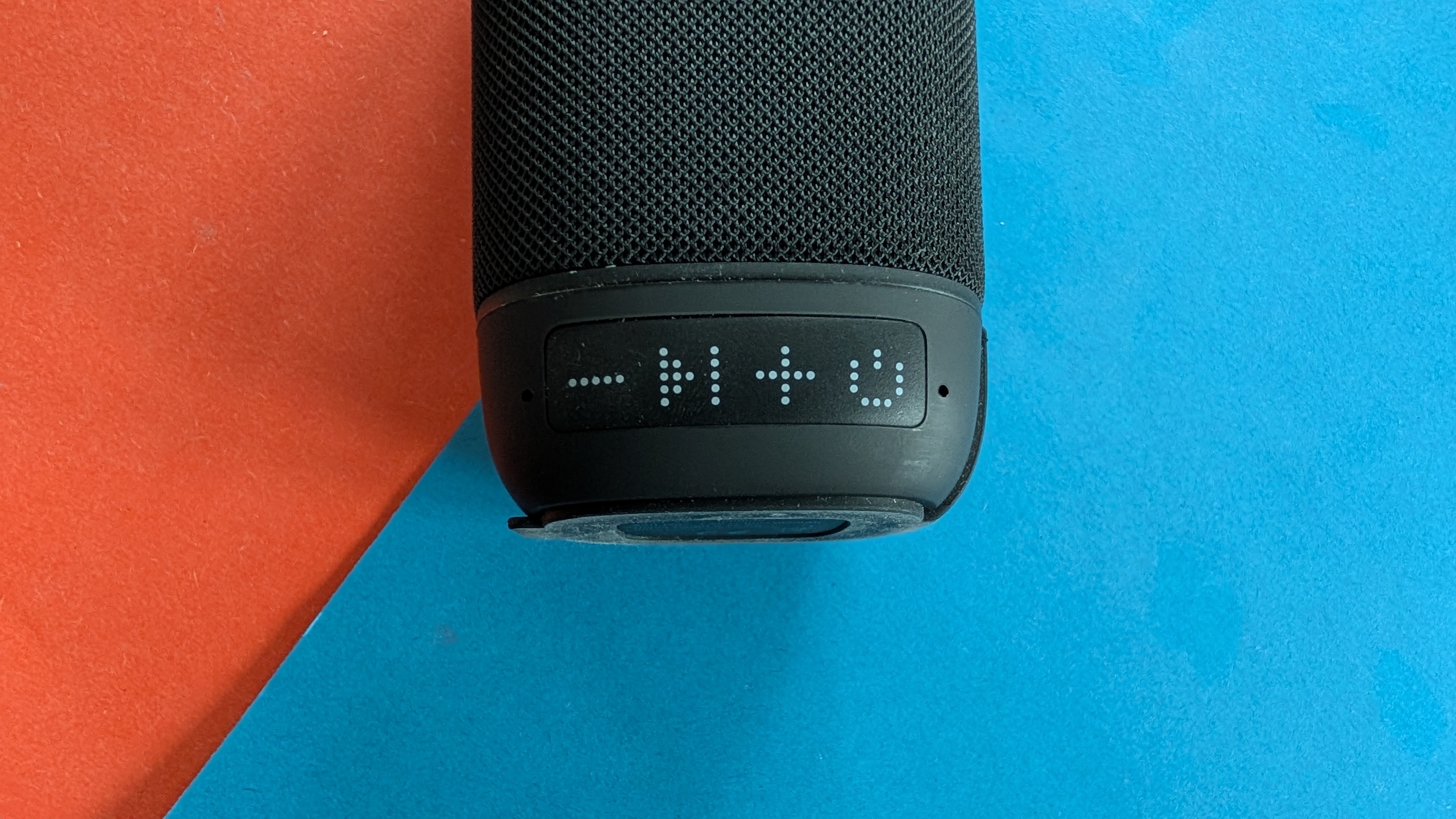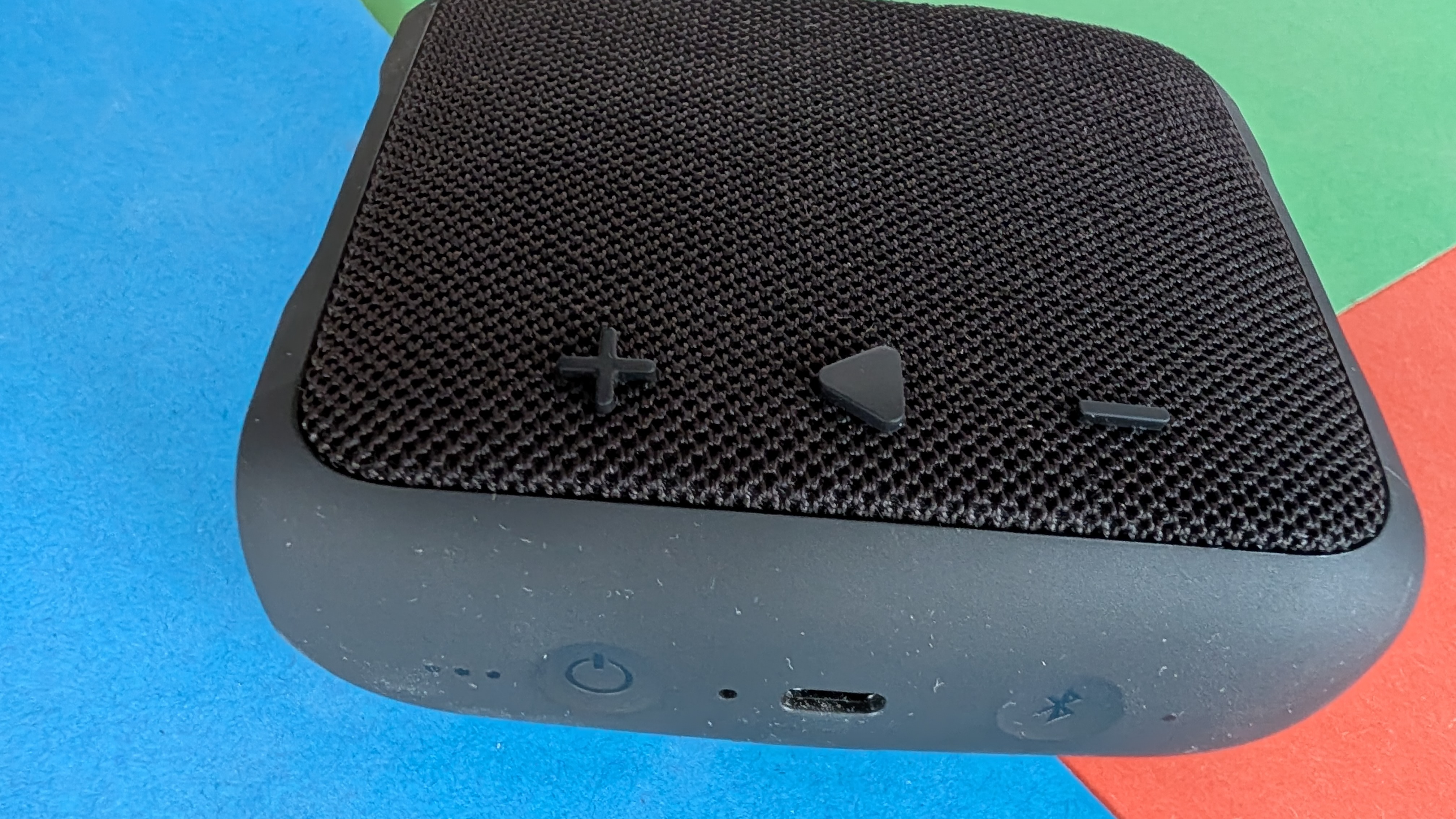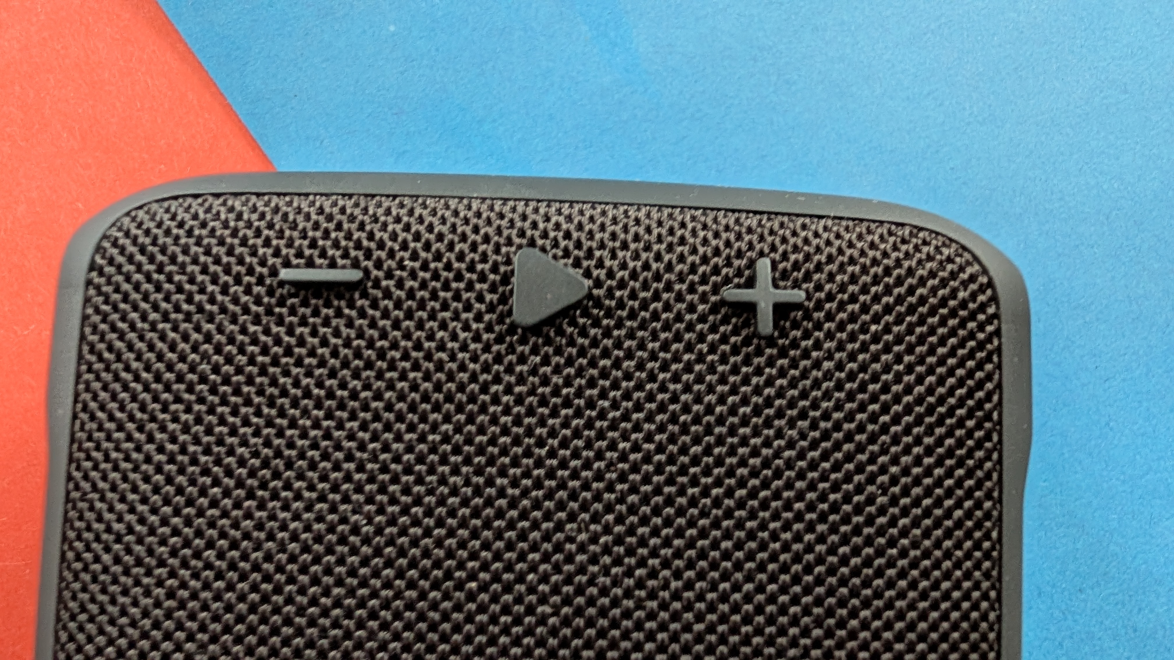 Dafür überzeugt die Bedienung: Auf der Mesh-Oberseite sitzen drei Tasten für Lautstärke und Wiedergabesteuerung. Der Play-Button aktiviert bei langem Drücken den Sprachassistenten, sofern ein Smartphone gekoppelt ist. Die Tasten sind sinnvoll angeordnet und dank ihrer auffälligen Haptik leicht zu erfühlen. An der Frontseite befinden sich Bluetooth-Button, Einschaltknopf, USB-C-Anschluss und Ladestandsanzeige.