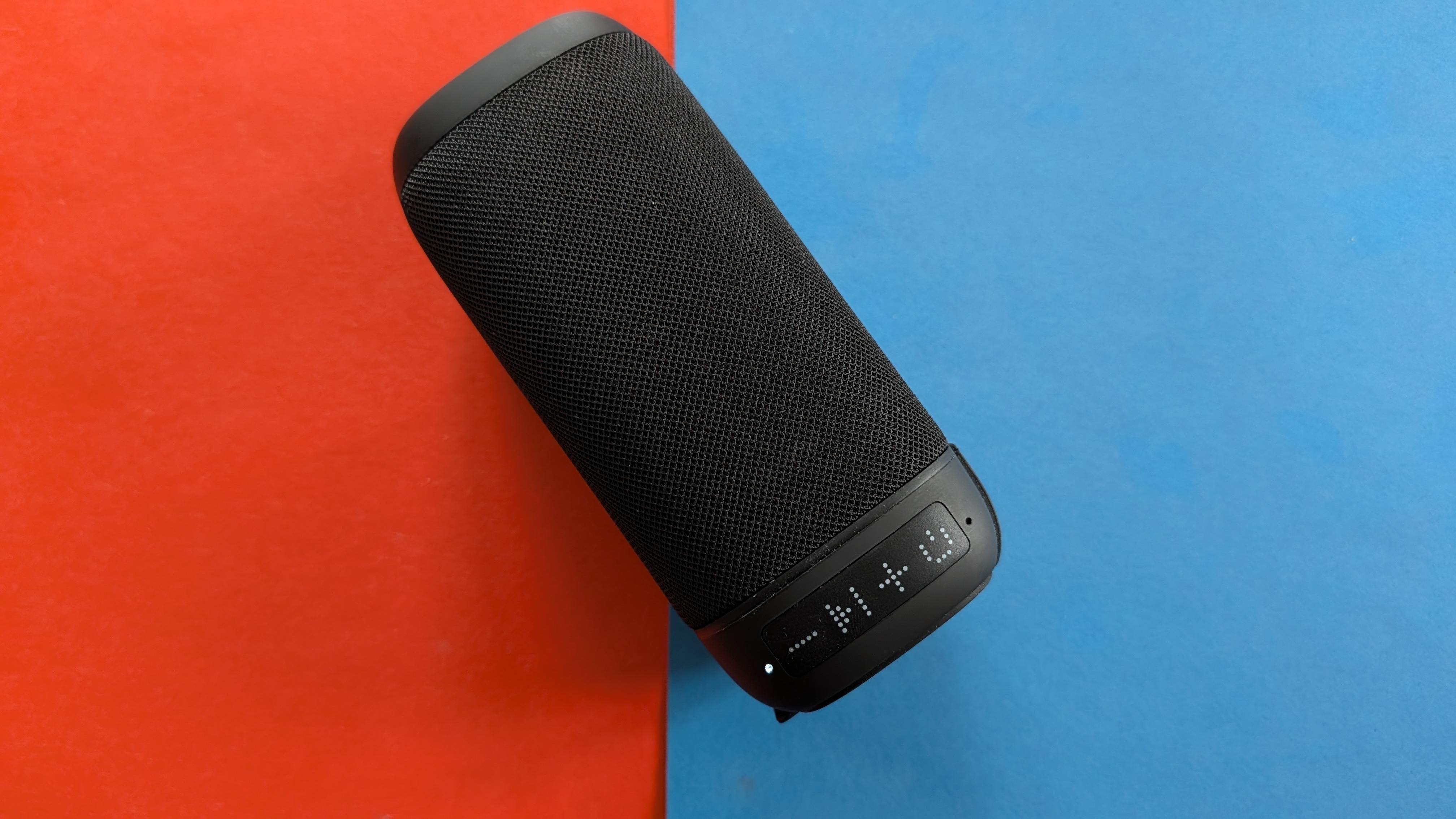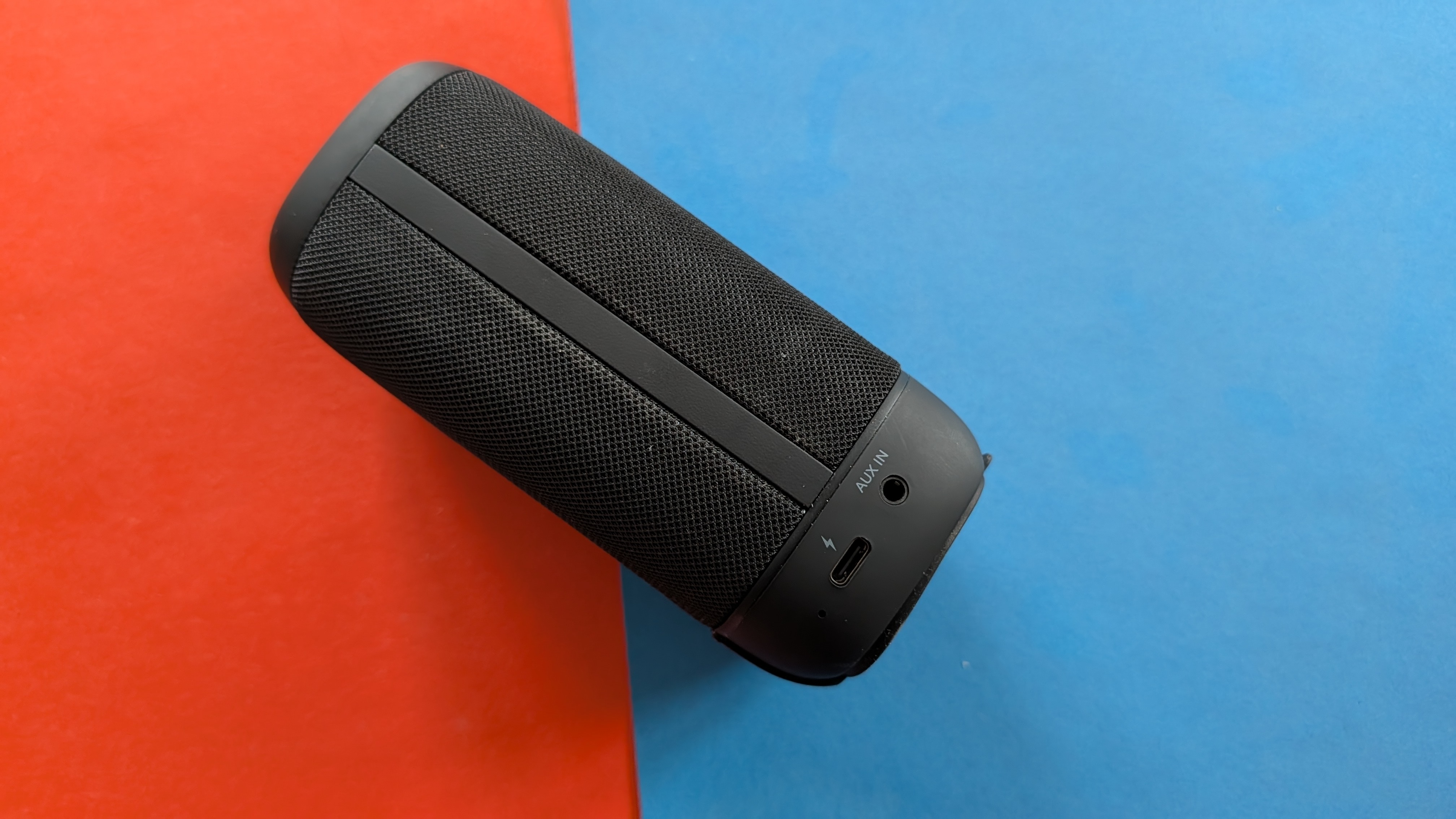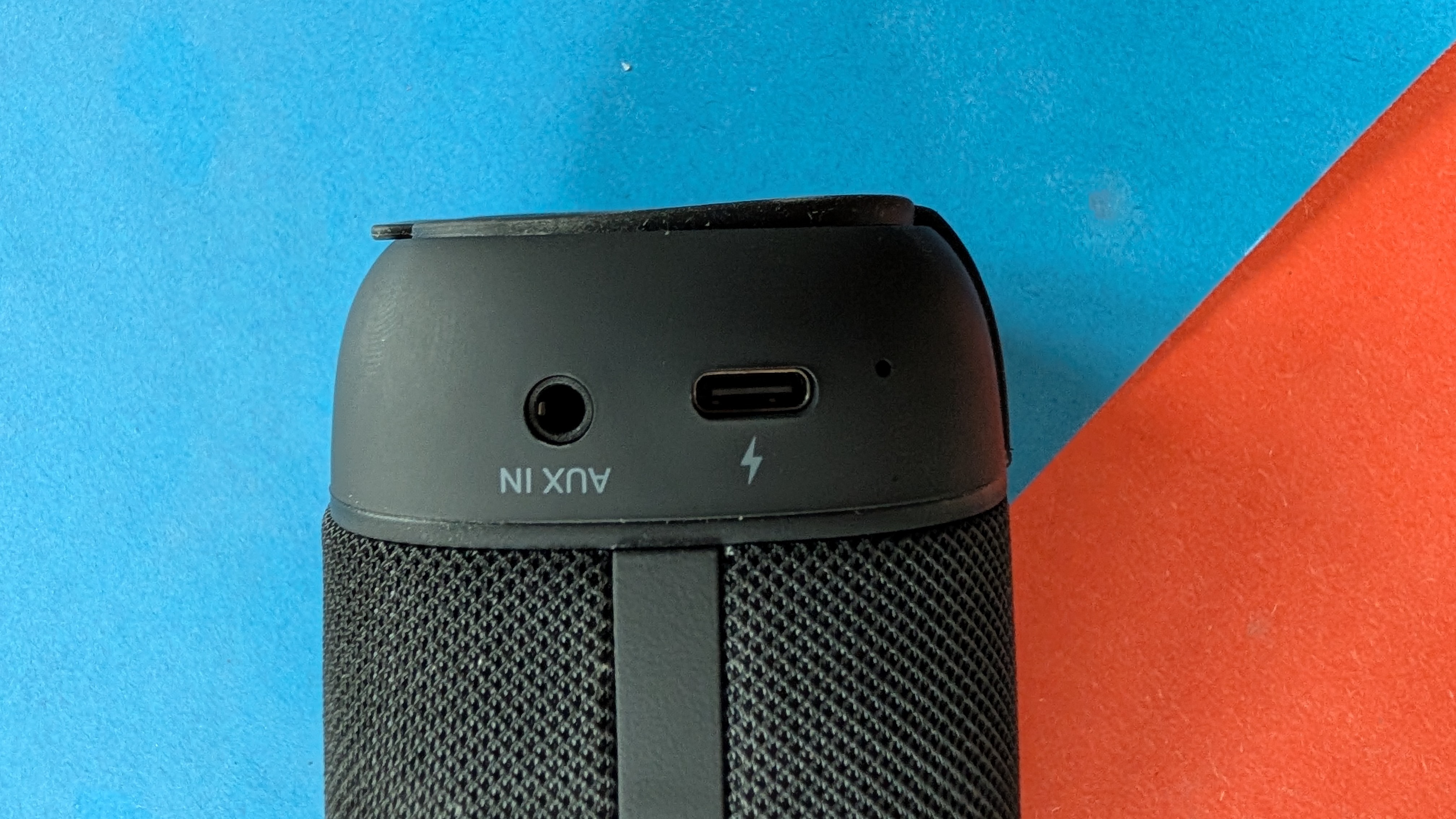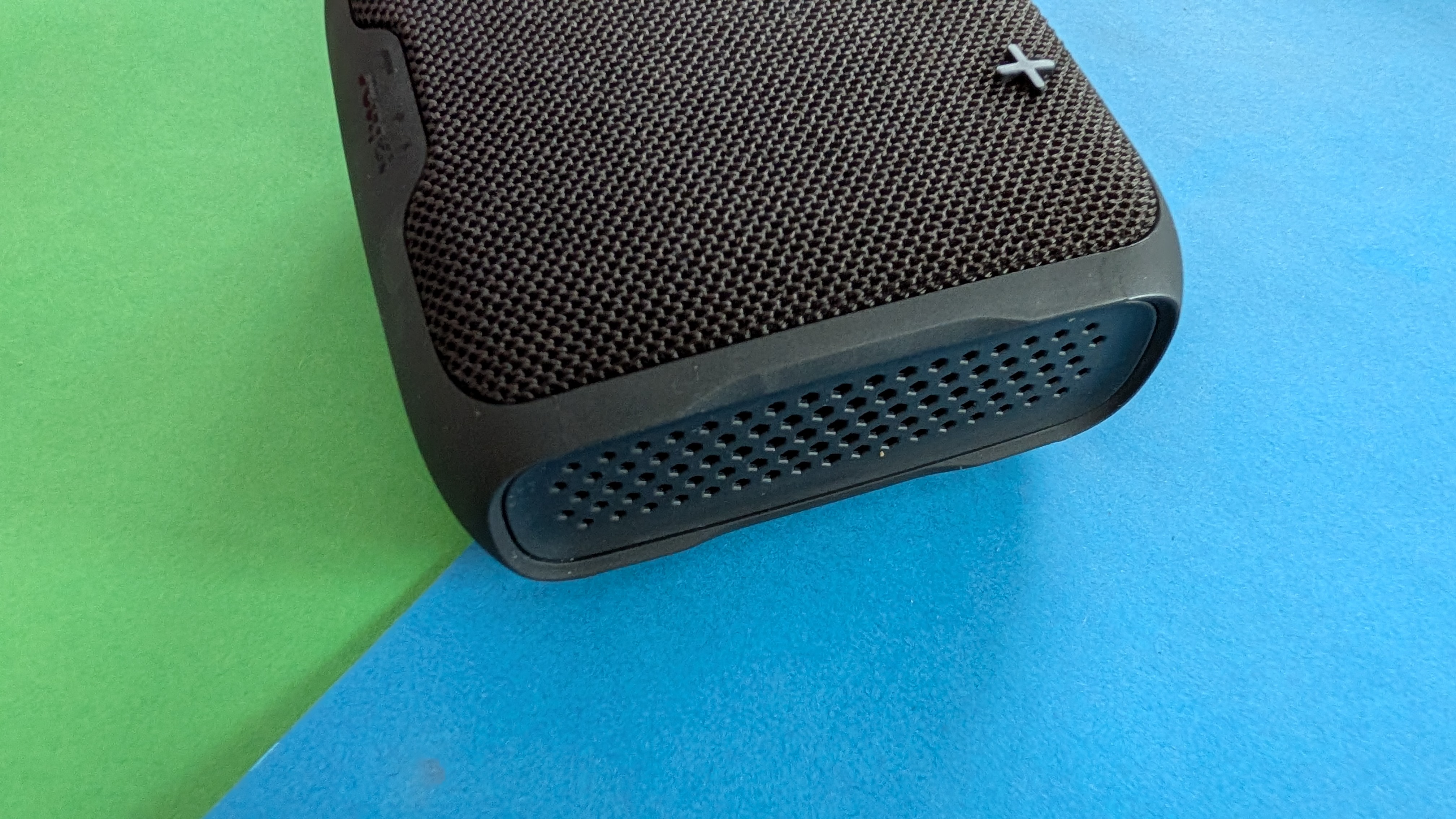 Dafür überzeugt die Bedienung: Auf der Mesh-Oberseite sitzen drei Tasten für Lautstärke und Wiedergabesteuerung. Der Play-Button aktiviert bei langem Drücken den Sprachassistenten, sofern ein Smartphone gekoppelt ist. Die Tasten sind sinnvoll angeordnet und dank ihrer auffälligen Haptik leicht zu erfühlen. An der Frontseite befinden sich Bluetooth-Button, Einschaltknopf, USB-C-Anschluss und Ladestandsanzeige.