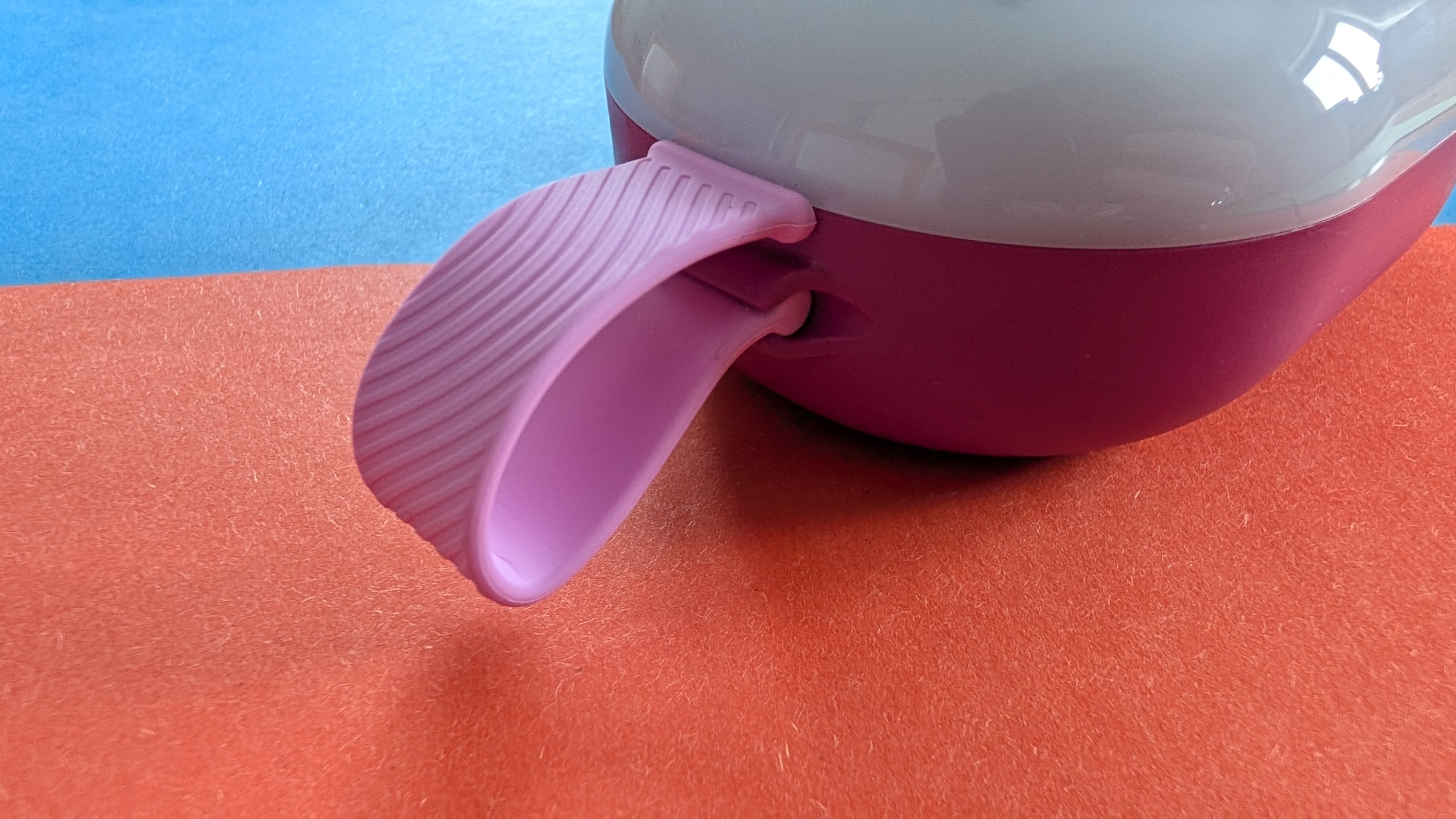 Der Speaker ist fast vollständig mit einer Silikonummantelung überzogen, wobei kleine Wölbungen an der Unterseite als rutschfeste Standfüße fungieren. Die integrierte Trageschlaufe aus Textil und Silikon dient gleichzeitig als Halteband mit Klettverschluss, über das sich der Lautsprecher beispielsweise am Lenker eines Fahrrads befestigen lässt. Das klappt im Test recht gut, weil die Gummierung an der Unterseite des Bandes ein Verrutschen verhindert. Allerdings hätte das gesamte Halteband gerne etwas länger sein können.