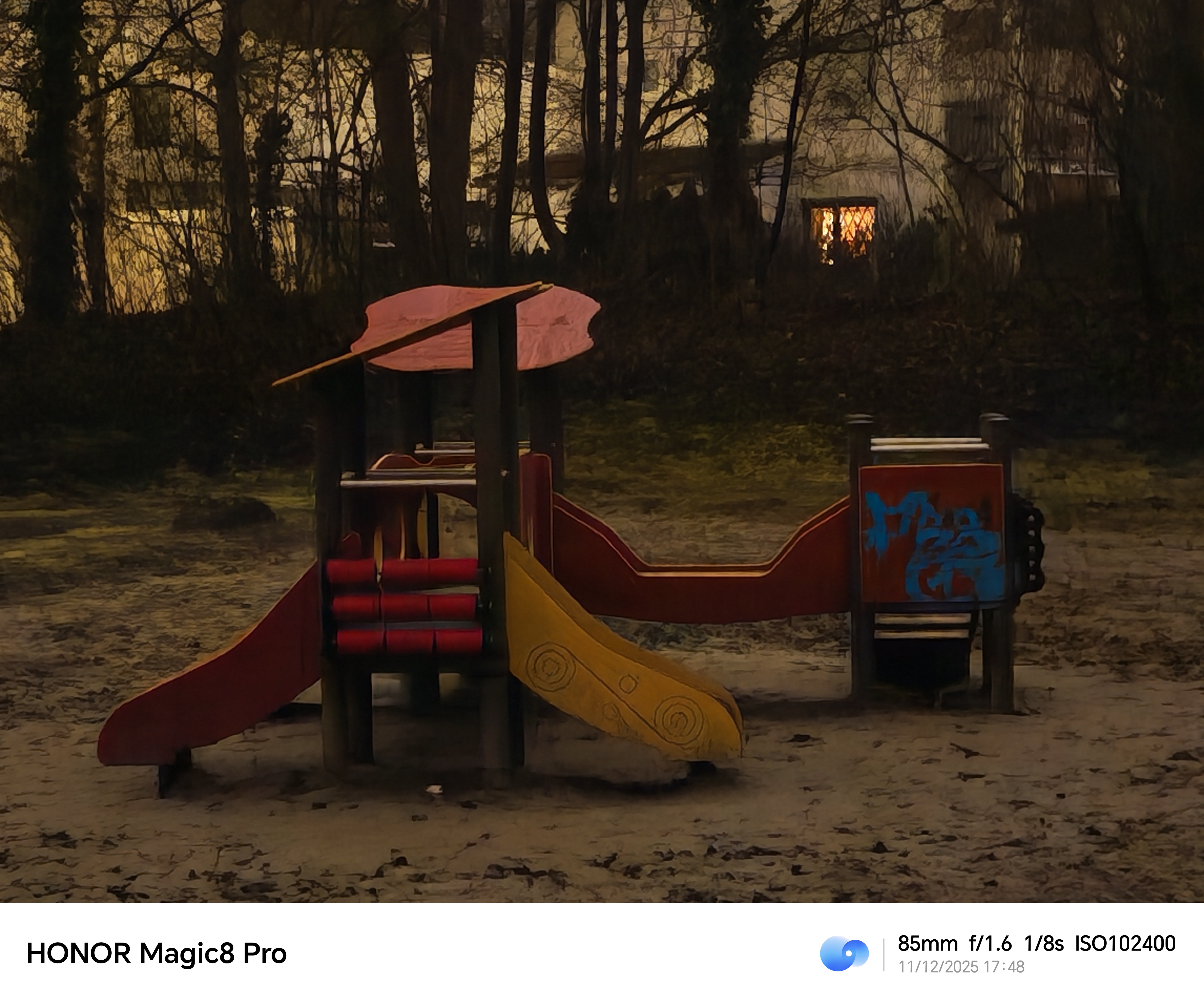 Zusätzlich kann das Magic 8 Pro Fotos per KI nachschärfen, was allerdings eine aktive Internetverbindung erfordert. Ein bis zu 100-facher Zoom ist zumindest theoretisch möglich, wirkt dann jedoch trotz KI-Unterstützung sichtbar grobpixelig. Mit an Bord sind erneut die Porträtfilter, die in Zusammenarbeit mit dem französischen Fotostudio Harcourt entstanden sind und je nach Auswahl stimmungsvolle Aufnahmen im Vintage-Look erzeugen.